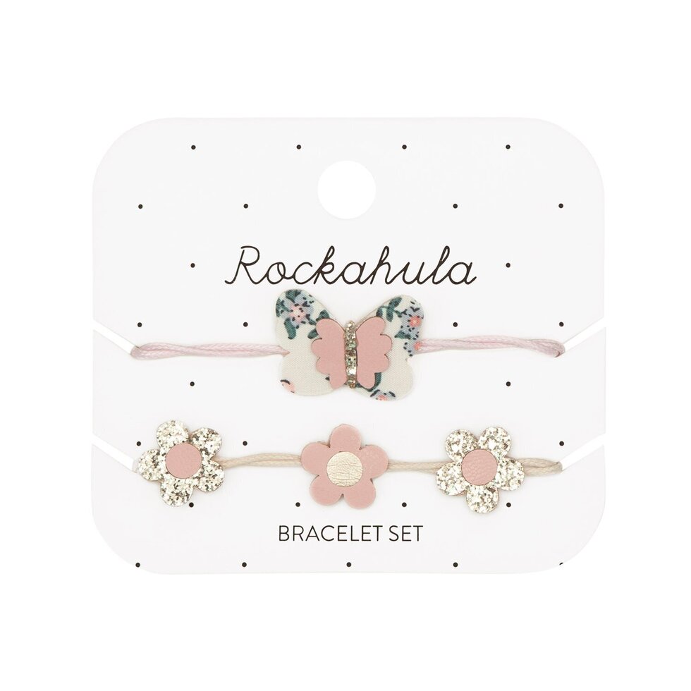 Onze set van twee armbandjes heeft het liefste vlindertje en een ketting van glitter en PU madeliefjes – perfect voor een zomerse dag! Aan een lichtroze koord met een karabijnsluiting en een verlengkettinkje voor de perfecte pasvorm.