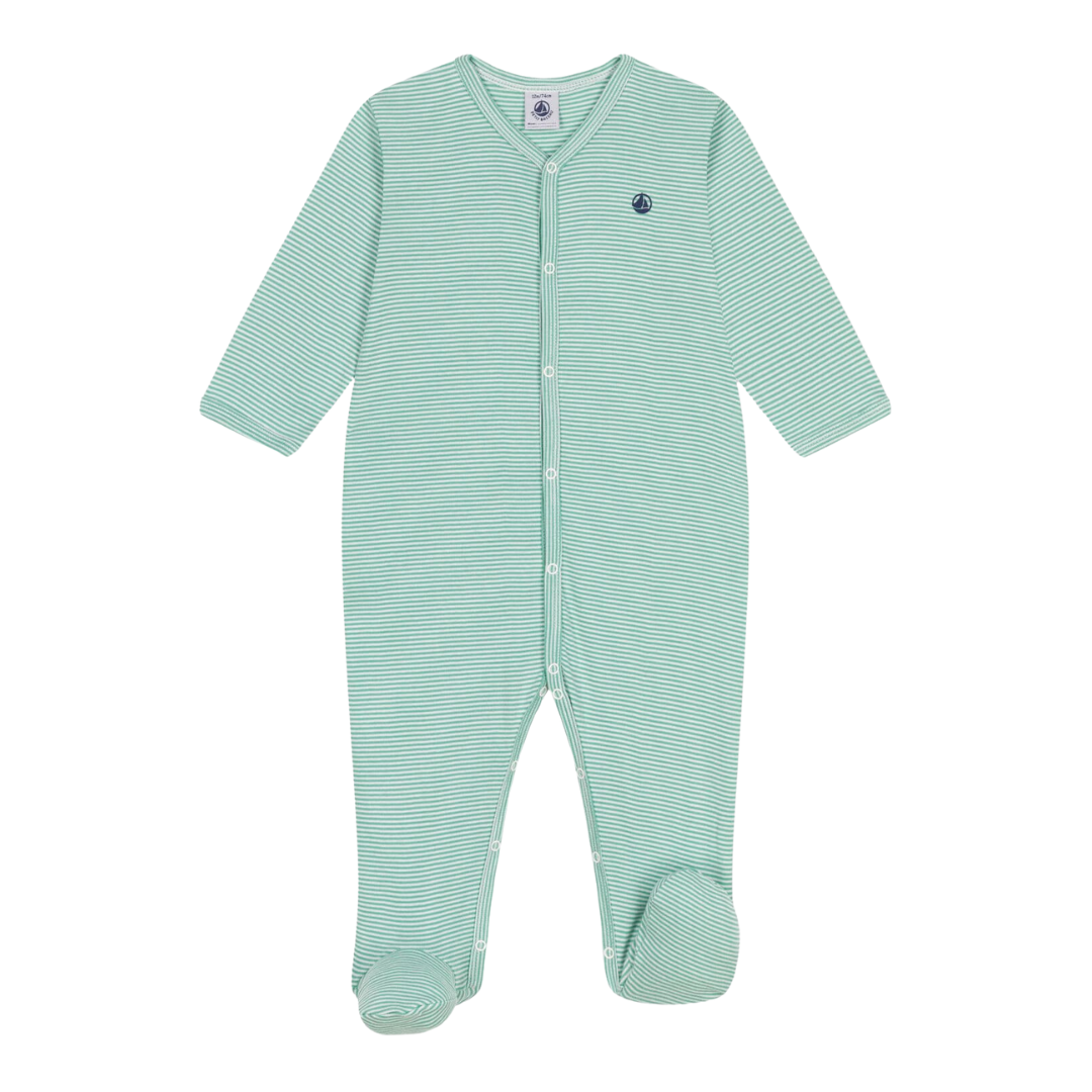 Superzachte babypyjama met streepjes. Gemaakt uit katoen.