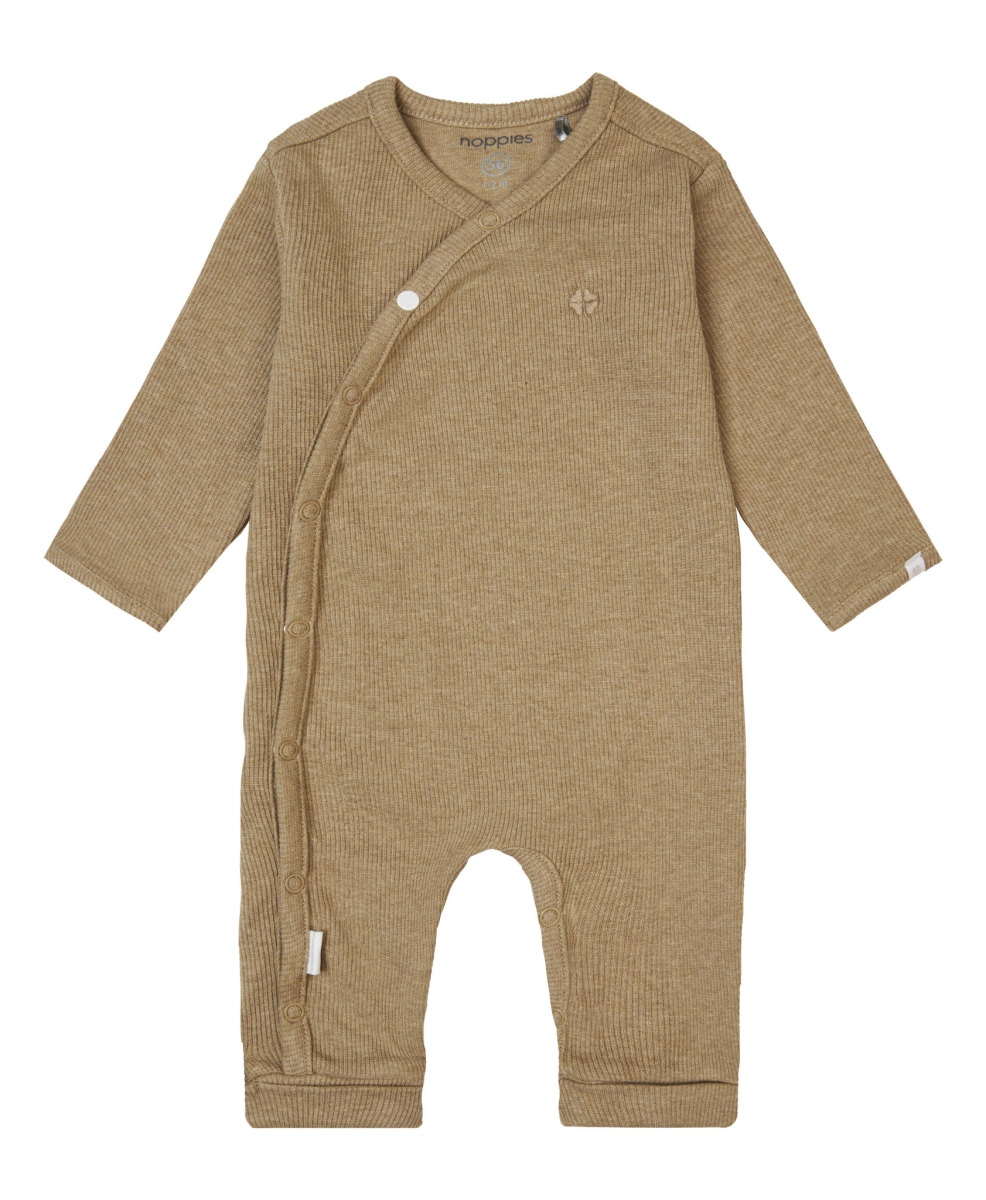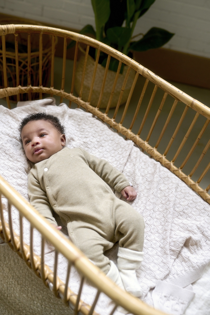 Playsuit Nevis heeft handige drukknoopjes op het lijfje en aan de binnenkant van de beentjes. Zo gaat het aan- en uitkleden en het verschonen een stuk makkelijker. De geribde stof en omgeslagen pijpjes maken de cosy look compleet.