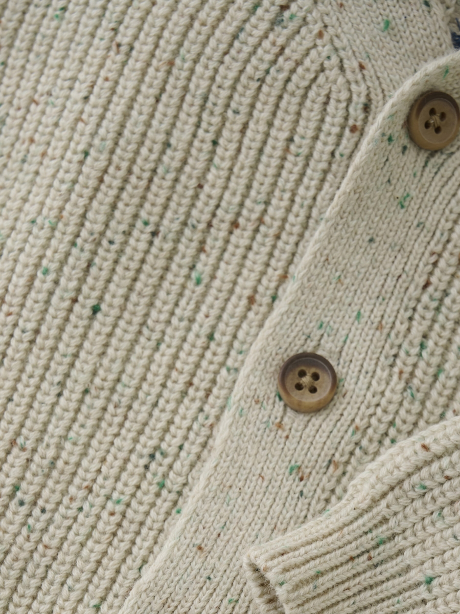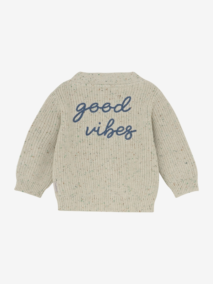 Zachte cardigan met leuke geborduurde “good vibes” opschrift op de rug.