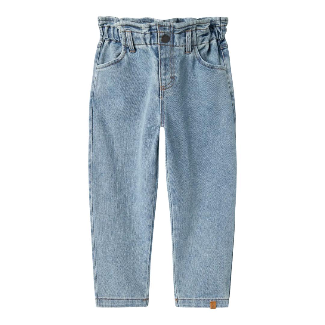 Deze jeans heeft een baggy pasvorm bij de heupen en een losse pasvorm bij de benen.