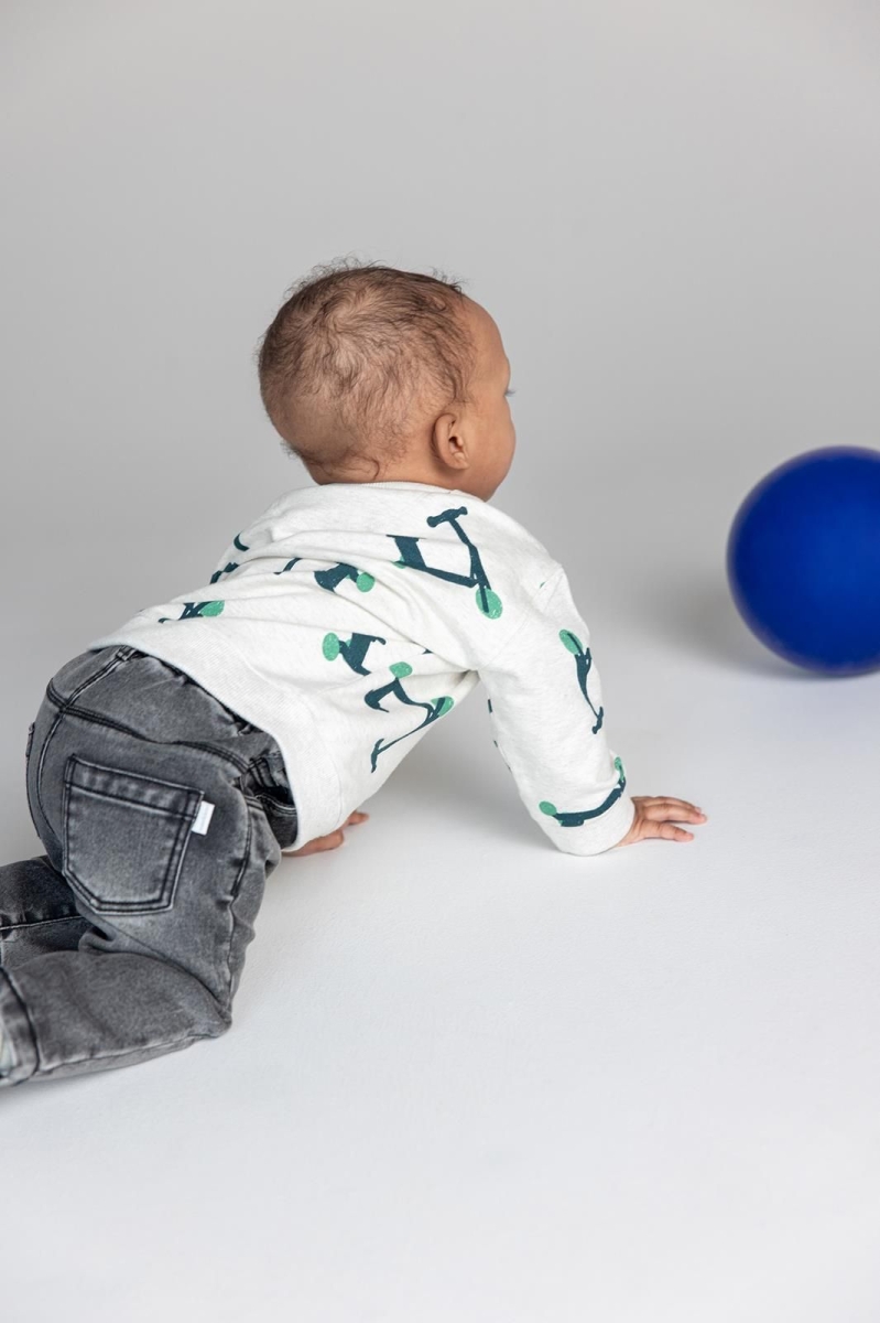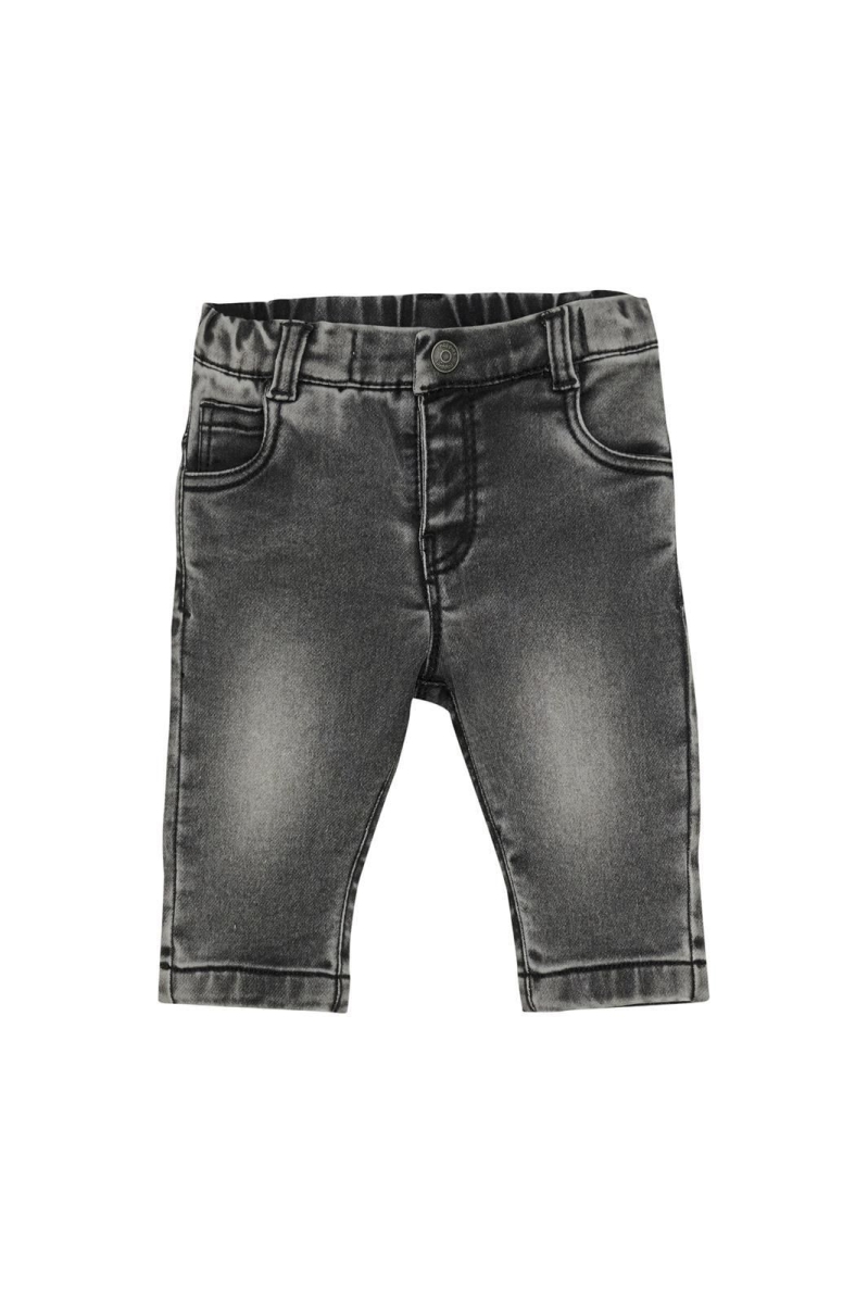 Jongens spijkerbroek Saranac van Noppies Baby. Deze spijkerbroek heeft een drukknoop, een relaxed fit en een duurzame wassing.