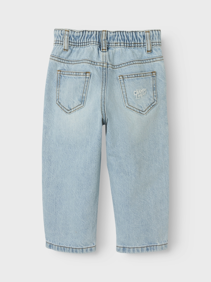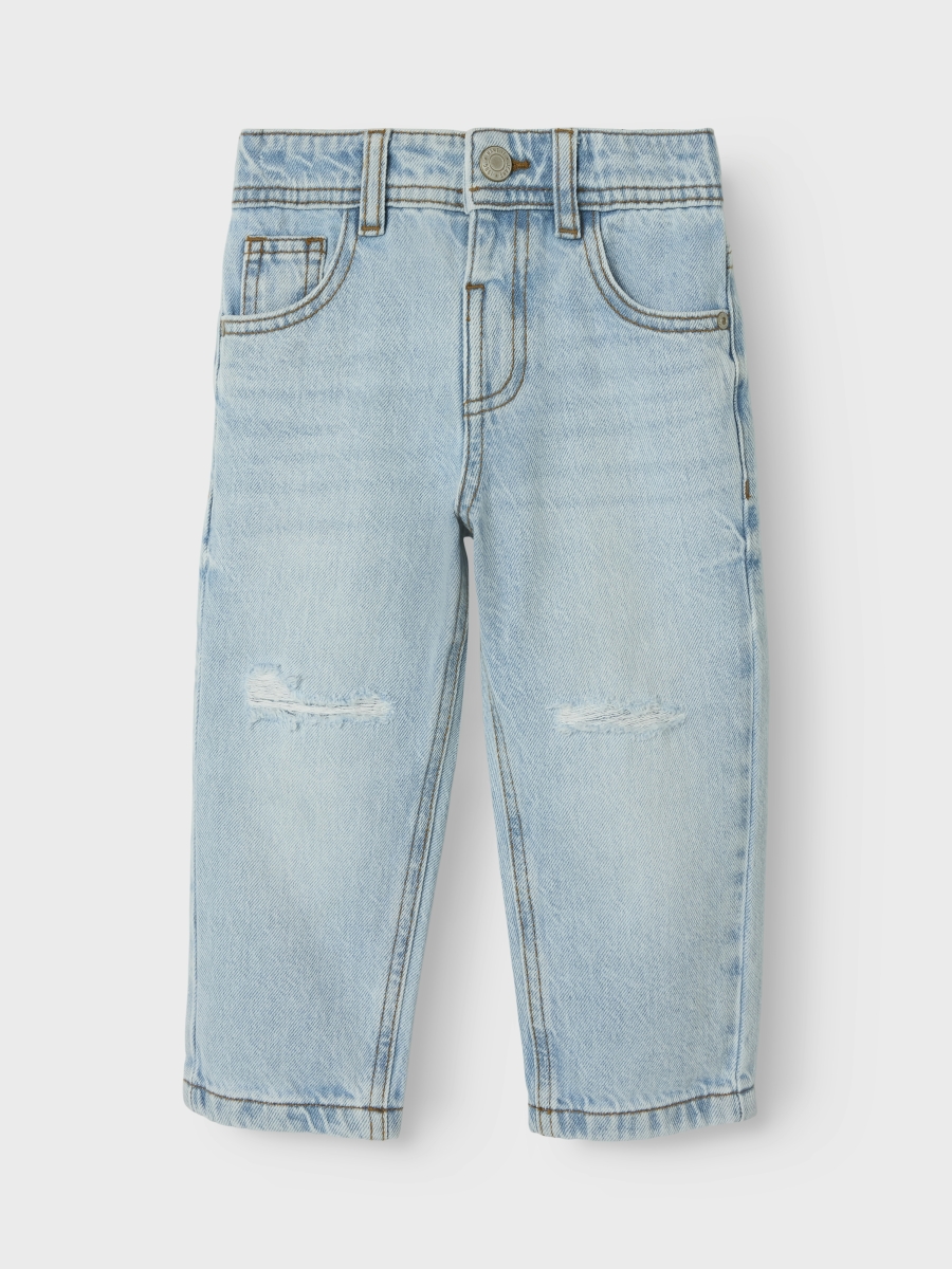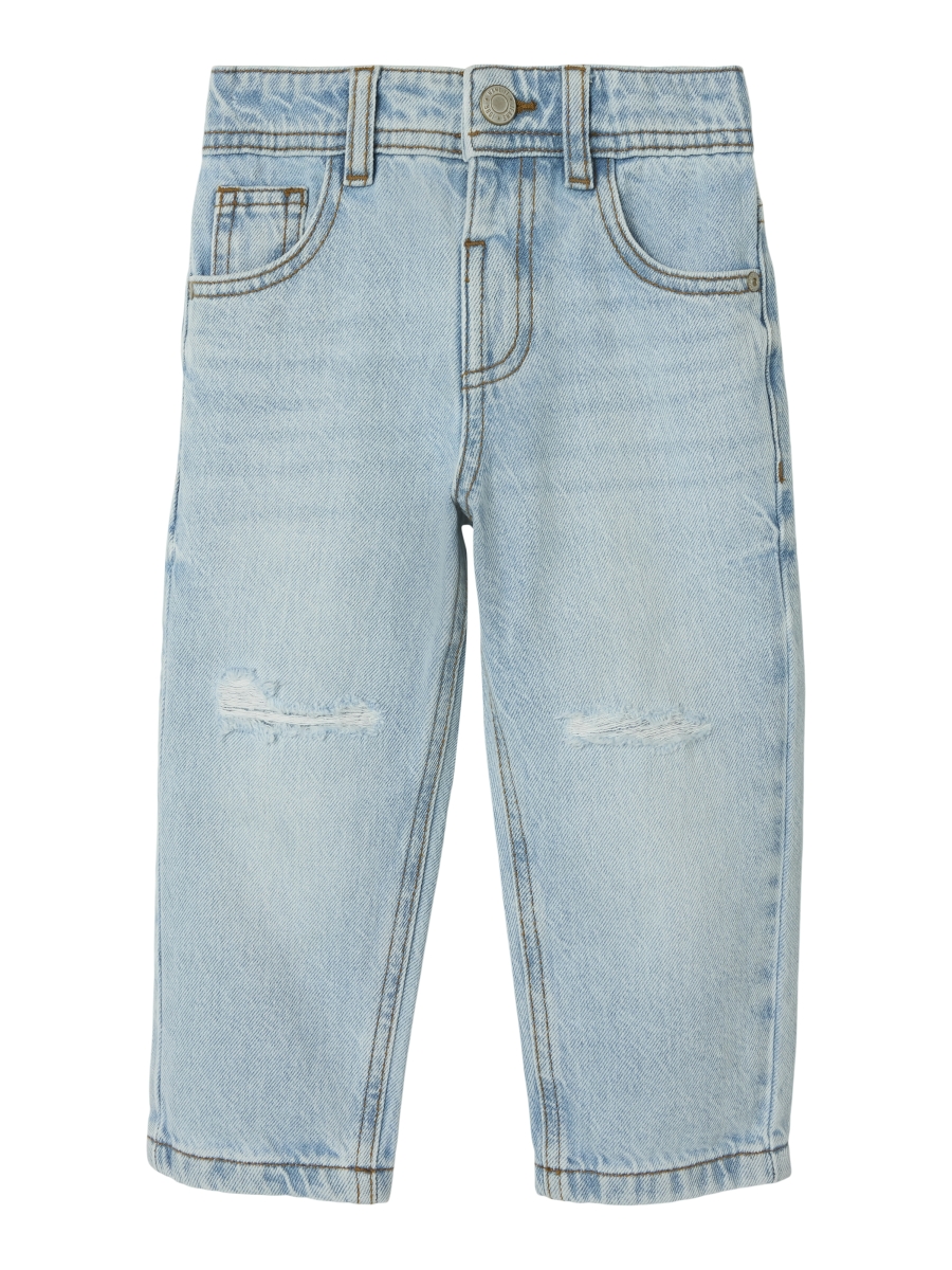 Stoere jeans met “slijtage” op de knie. Gemaakt met gerecycleerd katoen.