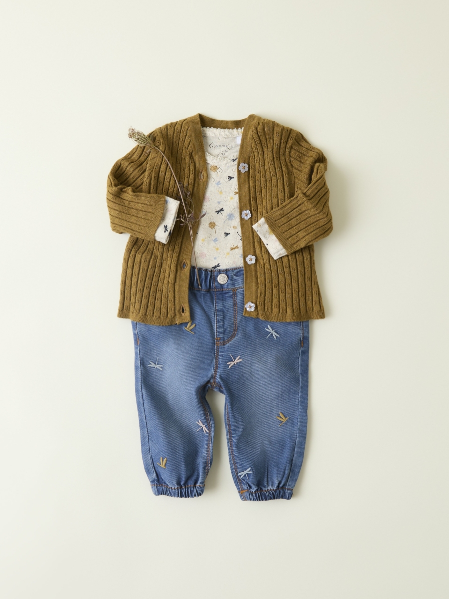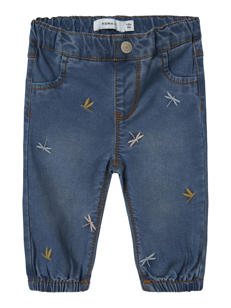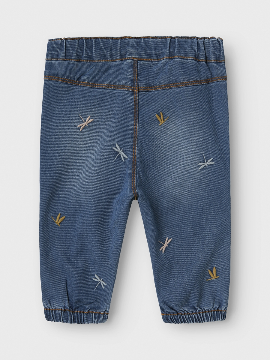 Leuk jeansbroekje met geborduurde libellen. Deze is gemaakt uit 71% Tencel, 20% gerecycleerd polyester, 8% viscose en 1% elastaan.