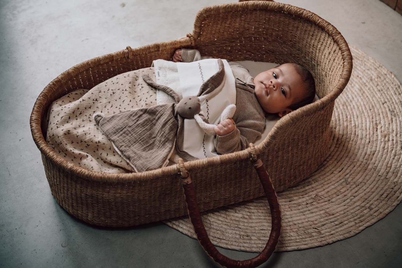 Het knuffeltje is gemaakt van 100% katoen. De luchtige hydrofiele stof wordt zachter en mooier bij elk gebruik en staat garant voor een tijdloze look.