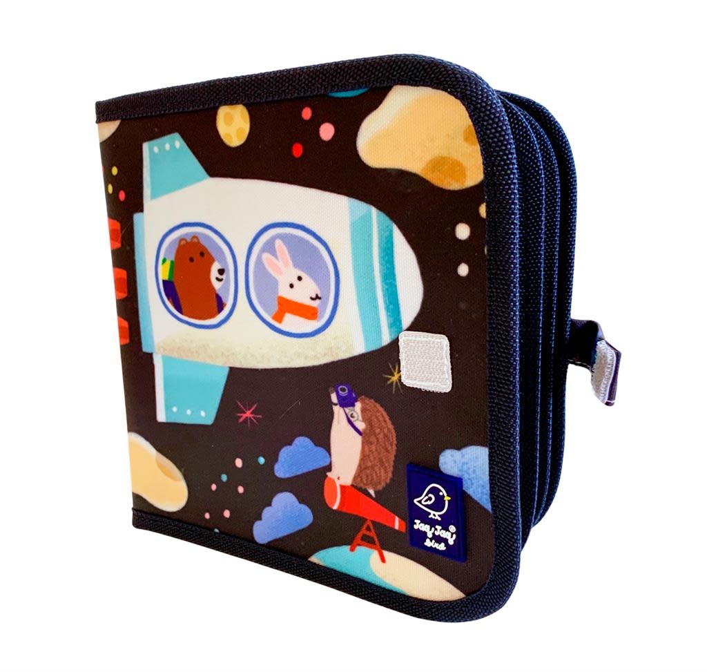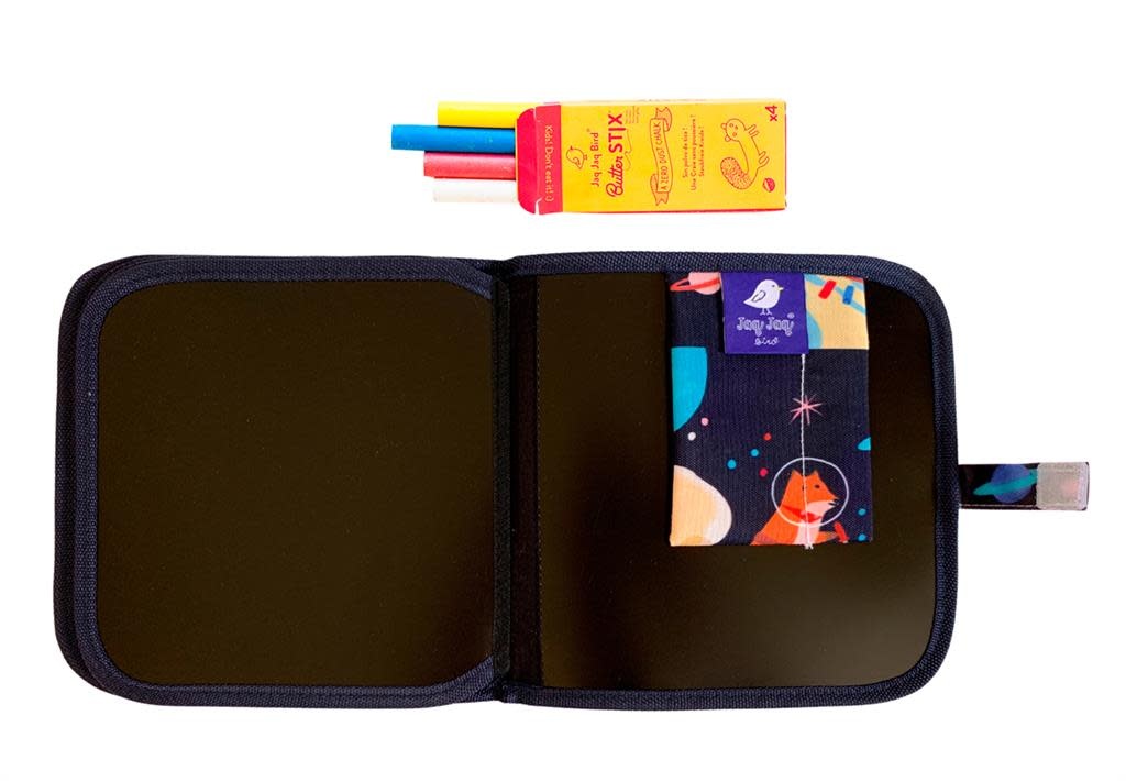 Jaq Jaq Bird uitwisbaar en herbruikbaar krijtboekje, geleverd met 4 stofvrije ButterStix. Je kan het boekje na gebruik gewoon schoonvegen met een vochtige doek en steeds weer opnieuw gebruiken.