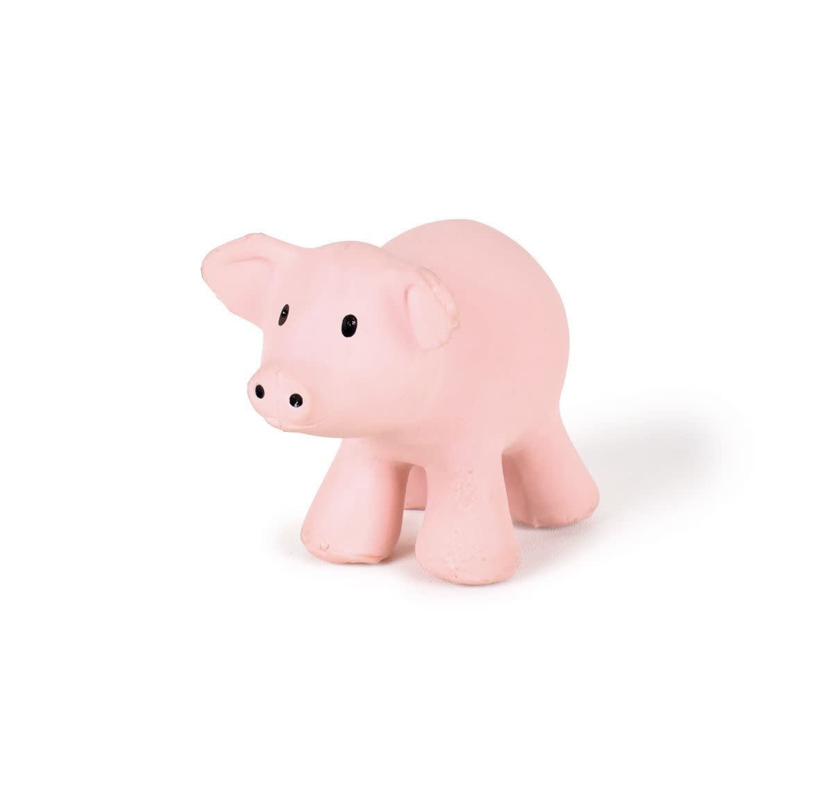 Dit diertje van Tikiri uit natuurlijk rubber is met de hand geschilderd met niet-giftige verf. Het speeltje werd uit één stuk gemaakt en bevat geen losse deeltjes. Helemaal veilig om op te sabbelen. Er zit een belletje in en kan dus gebruikt worden als rammelaar. Dit diertje heeft geen gaatje onderaan, dus hij kan gemakkelijk mee in bad zonder risico op schimmels.