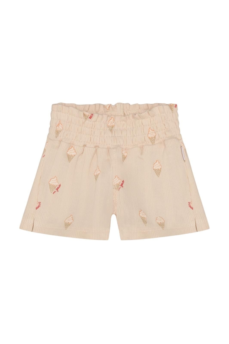 Dit meisjes shortje van Noppies is gemaakt voor zonnige dagen. De zachte ribstof met stretch beweegt soepel met je kindje mee en voelt prettig aan op de huid. En dan die vrolijke ijsjesprint – daar smelt je toch van? Het shortje is gemaakt van biologisch katoen met een vleugje elastaan en draagt het GOTS-certificaat (CERES-0366).