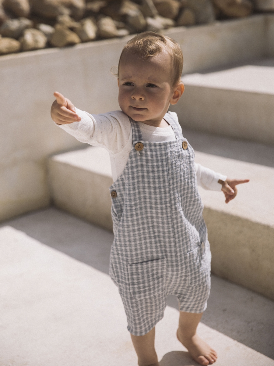 Losse salopette short met ruitjespatroon.