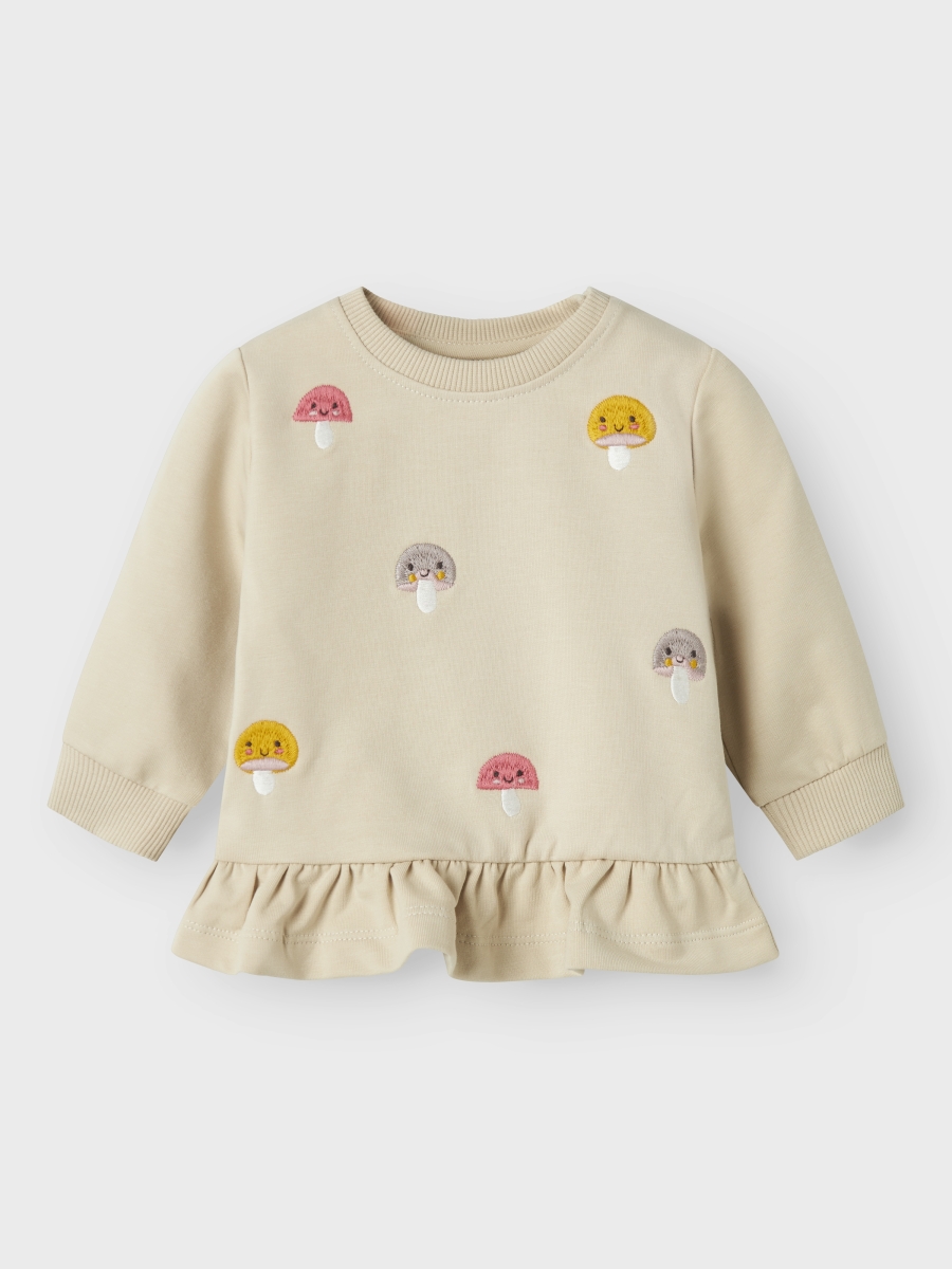 Sweater truitje met paddenstoeltjes op. Mooi combineerbaar met het broekje Lamella.