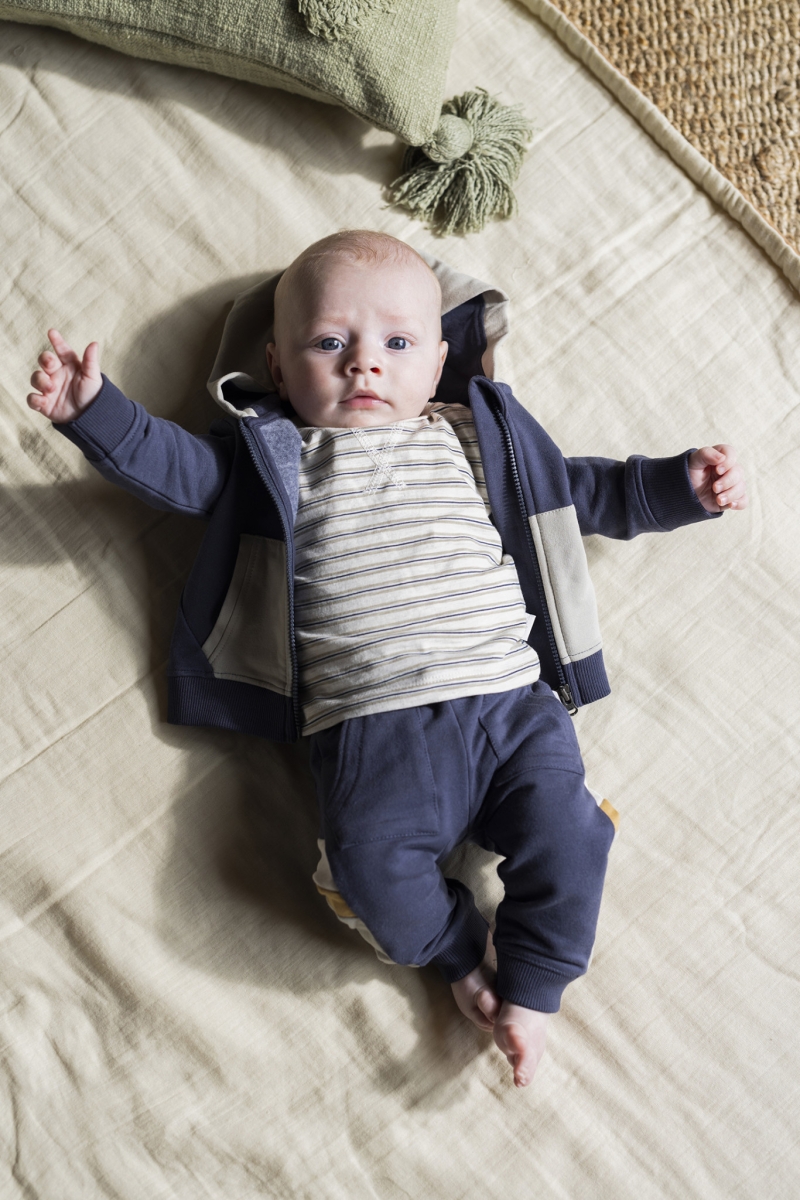 Comfy en sportief vest uit de Noppies Baby collectie. Vest Moultrie heeft een eigenwijze look doordat de capuchon en zakjes een contrasterende kleur hebben. Zachter dan dit wordt het niet! Deze extra zachte stof voelt aangenaam op de kwetsbare huid van je kindje. De stretch in de stof zorgt voor veel draagcomfort.