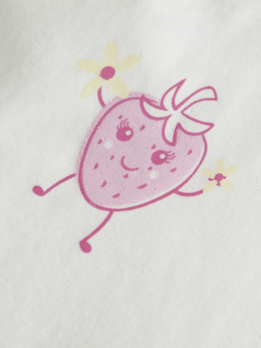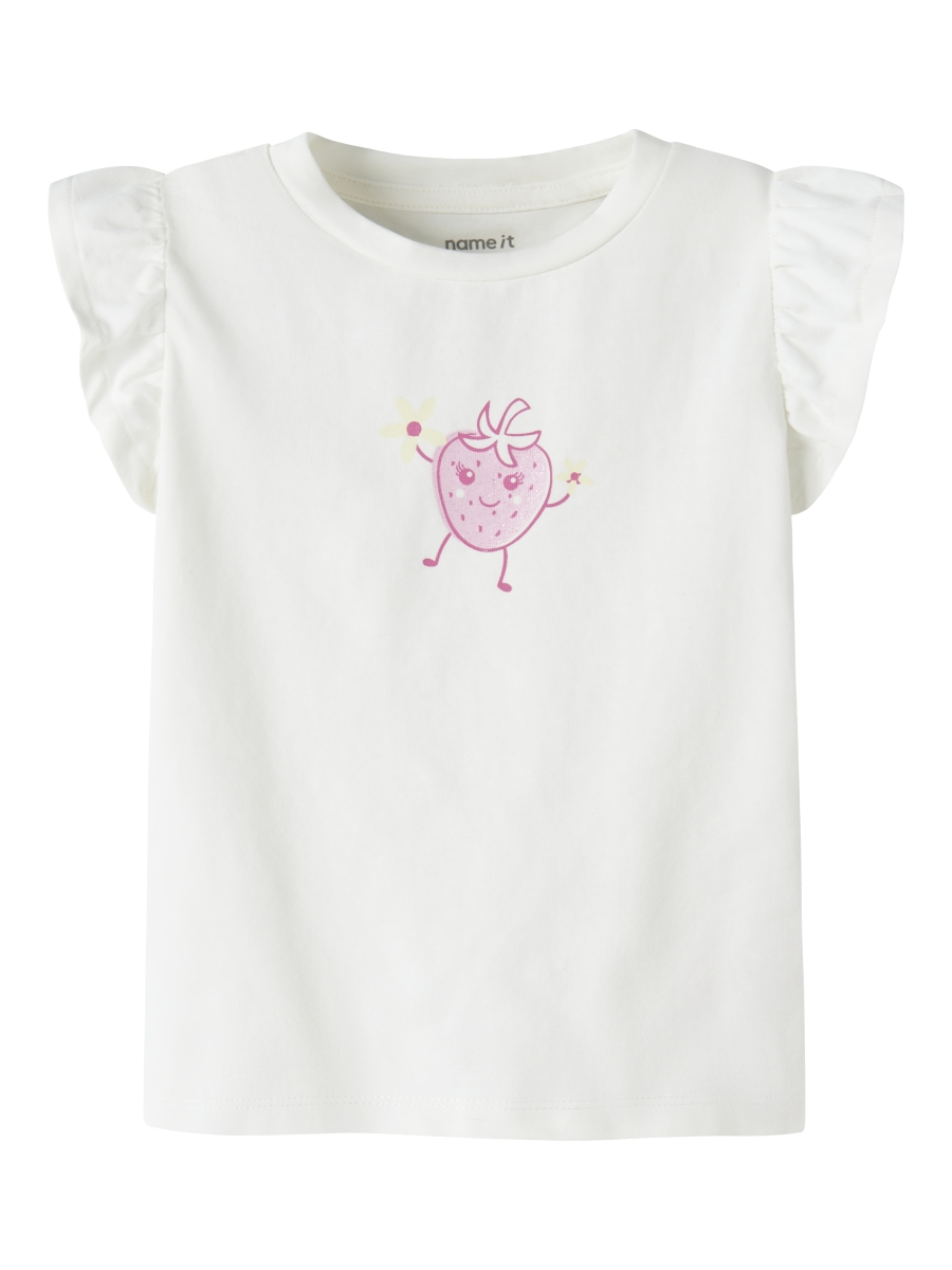 Mooi vrolijk t-shirtje met kapmouw. Er staat een super leuk glitter aardbeitje op.