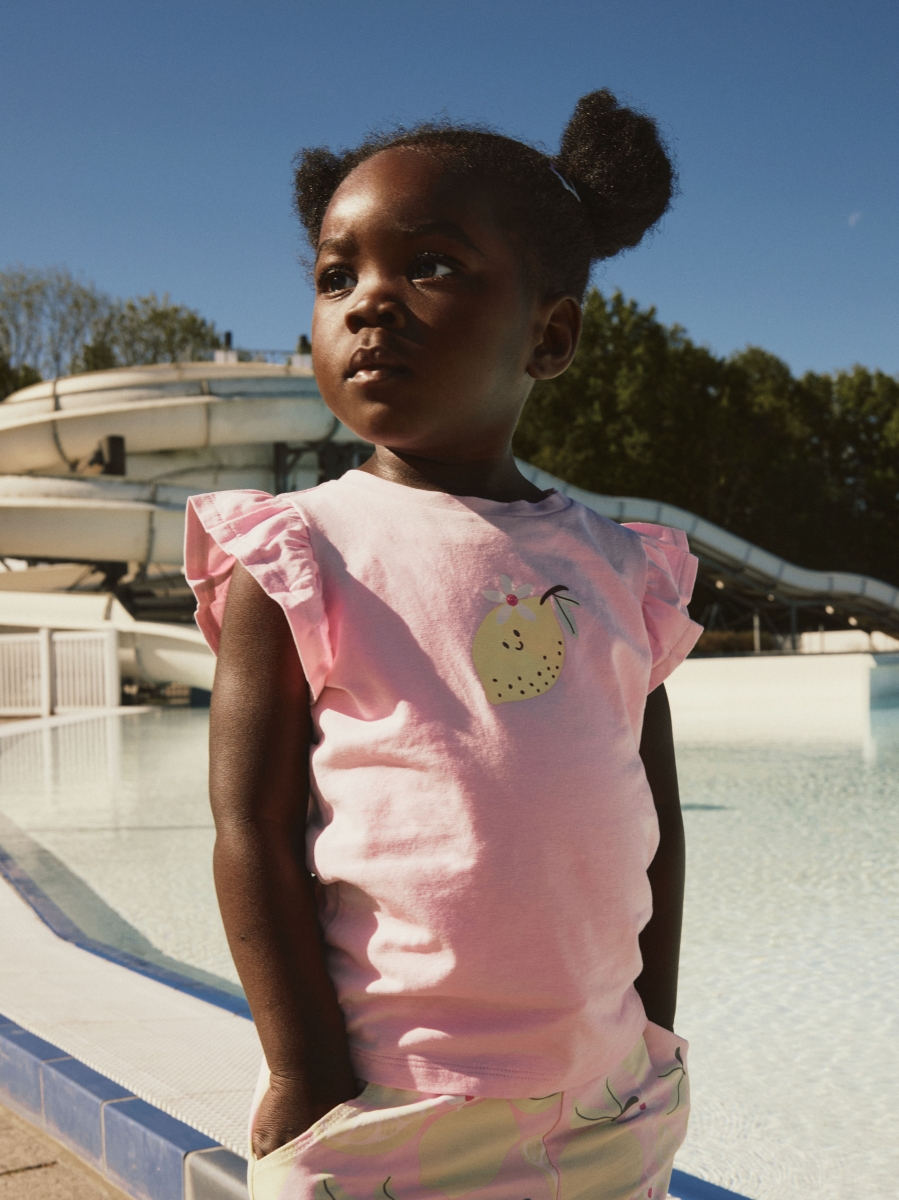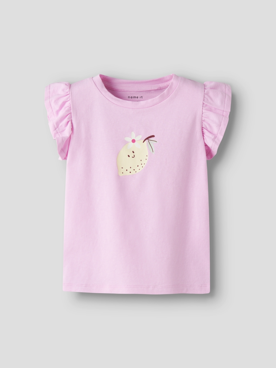 Mooi vrolijk t-shirtje met kapmouw. Er staat een super leuk citroentje op.