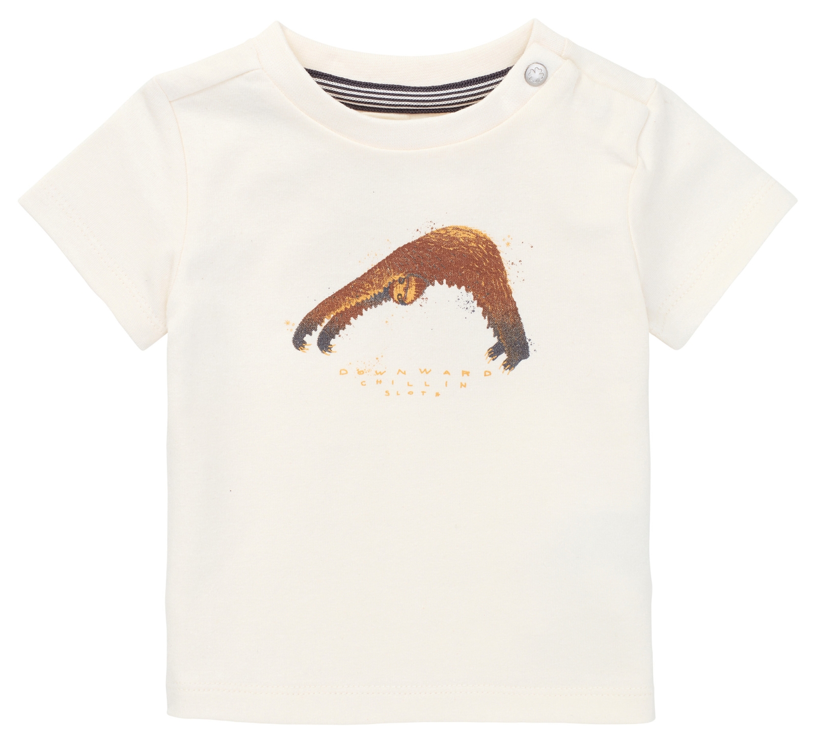 De luiaard is toch wel een van de leukste diersoorten, kijk alleen al naar deze grappige opdruk! T-shirt Hirosaki heeft een handig drukknoopje naast de halslijn waardoor het aan- en uittrekken een stuk makkelijker gaat. Het zachte stretchstofje is supercomfortabel om te dragen. En superzacht voor het babyhuidje.