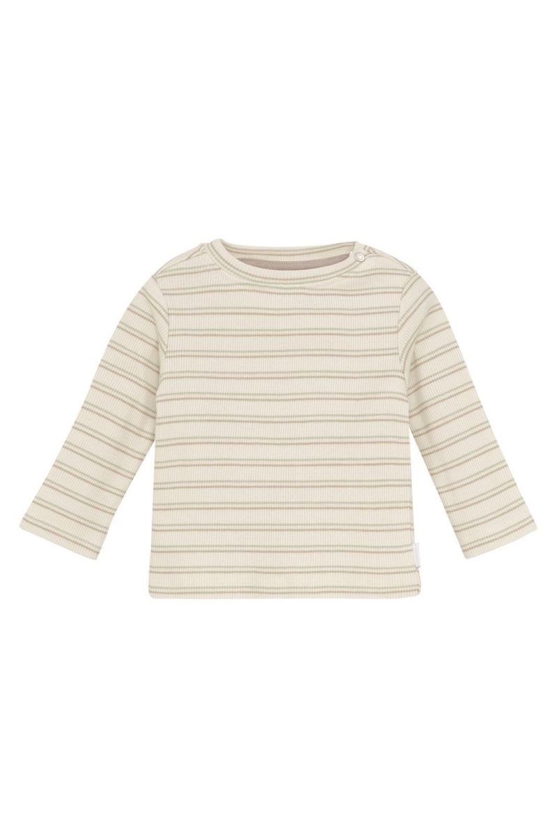 Unisex longsleeve Sumer van Noppies Baby, gemaakt van GOTS-gecertificeerd katoen, uitgevoerd met een all-over streep dessin. De longsleeve is voorzien van een ronde hals met een drukknoop en lange mouwen.