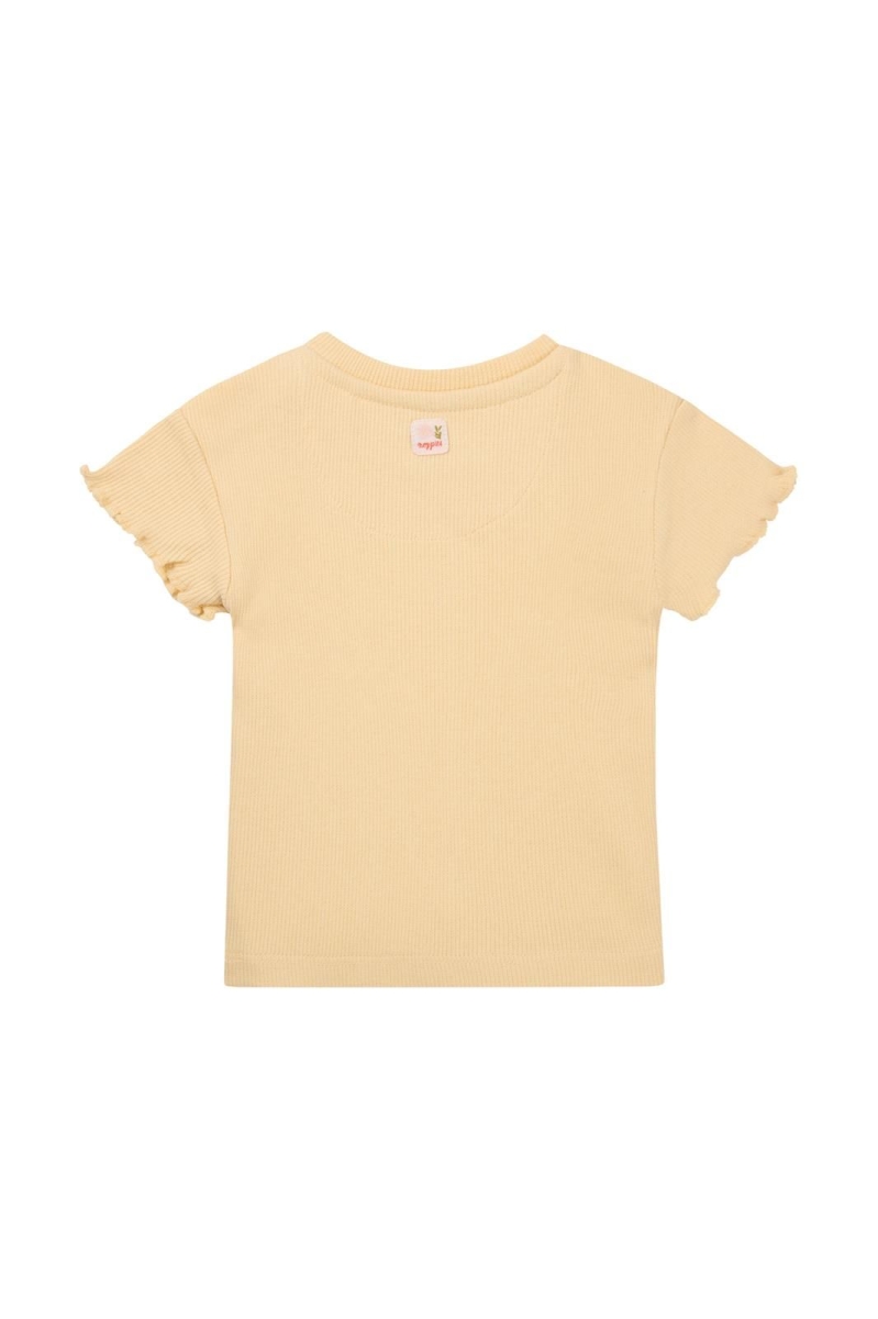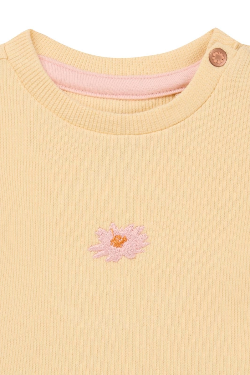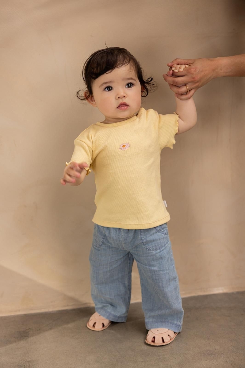 Lief rib t-shirtje met geborduurde bloem. Deze is gemaakt uit organisch katoen.