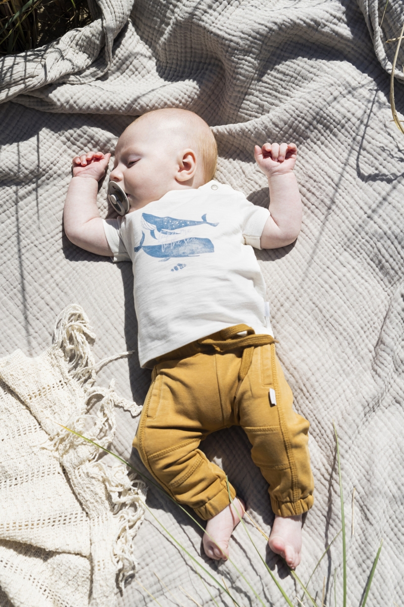 Dit item heeft het GOTS Organic-keurmerk. Dat wil zeggen dat het voor minimaal 95% uit biologische vezels bestaat. GOTS (Global Organic Textile Standard) is wereldwijd het meest toonaangevende en betrouwbare keurmerk voor biologisch textiel. Elke stap in het productieproces is onafhankelijk gecontroleerd en gecertificeerd. Zo weet je zeker dat dit kledingstuk op een milieuvriendelijke en maatschappelijk verantwoorde manier is geproduceerd.