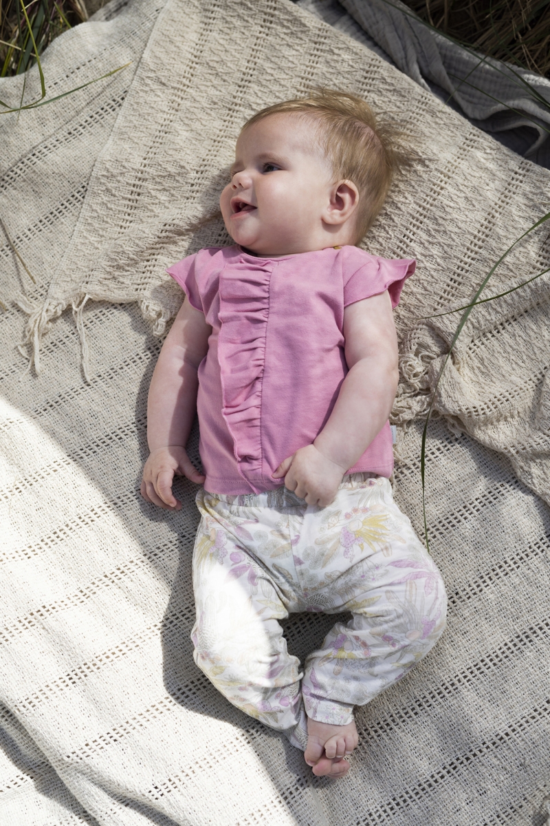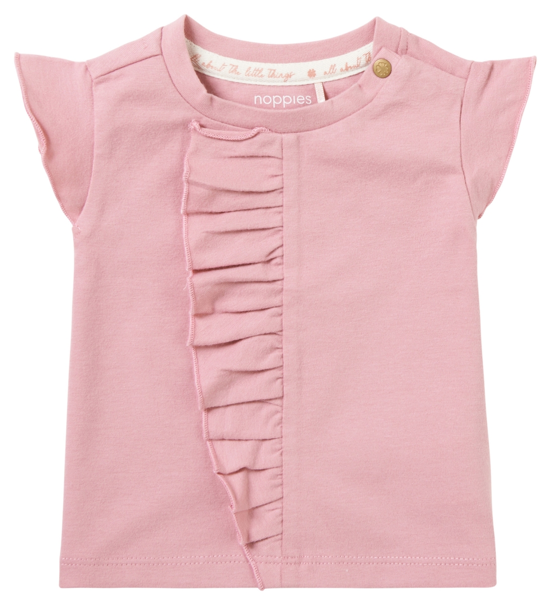 Schattig shirtje met ruffels uit de Noppies Baby collectie. T-shirt New Castle heeft een handig drukknoopje in de halslijn waardoor het aan- en uit kleden een stuk makkelijker gaat. En hoe lief zijn die ruffeltjes? De stretch in het zachte katoen zorgt voor veel draagcomfort.
