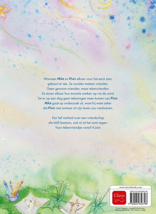 Wanneer Mika en Pluis elkaar voor het eerst zien, gebeurt er iets. Ze worden meteen vrienden. Geen gewone vrienden, maar tekenvrienden. Ze sturen elkaar hun mooiste werken op via de wind. Maar op een dag komen er geen tekeningen meer van Pluis. Mika gaat op onderzoek uit, want hij weet zeker dat Pluis niet zomaar uit zijn leven zou verdwijnen.