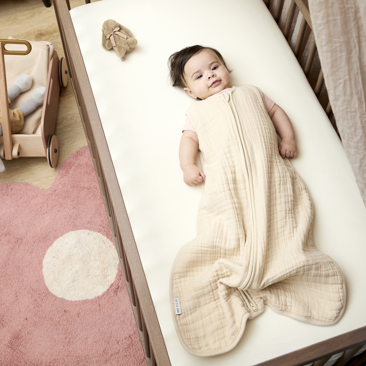 Al deze slaapzakken zijn uitgebreid getest en voldoen aan de Europese veiligheidsnorm EN 16781. De YKK-rits over de volledige lengte voldoet eveneens aan de Europese norm en sluit van boven naar beneden, zodat het lipje (de puller) onderaan eindigt. Dit voorkomt dat je kindje zelf de rits naar beneden kan trekken en zorgt dat de halsopening altijd goed aansluit. Zo kan je baby niet in de slaapzak wegzakken en blijft de slaapomgeving veilig en comfortabel. Bovendien komt de puller niet in de buurt van het hoofdje van je kind, wat extra veiligheid biedt tijdens het slapen.