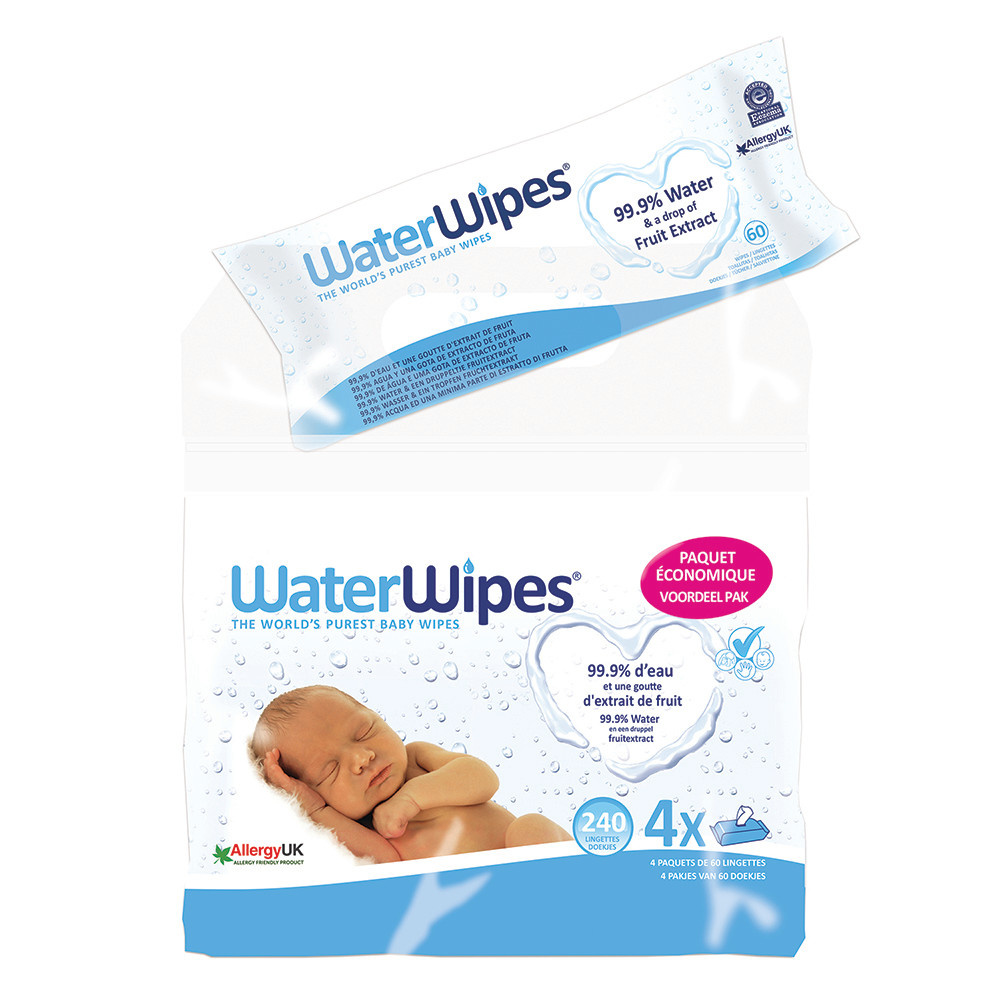 WaterWipes billendoekjes bevatten 99,9% water en een druppel fruitextract. Ze zijn dus veilig te gebruiken op de tere huid van een pasgeboren baby.