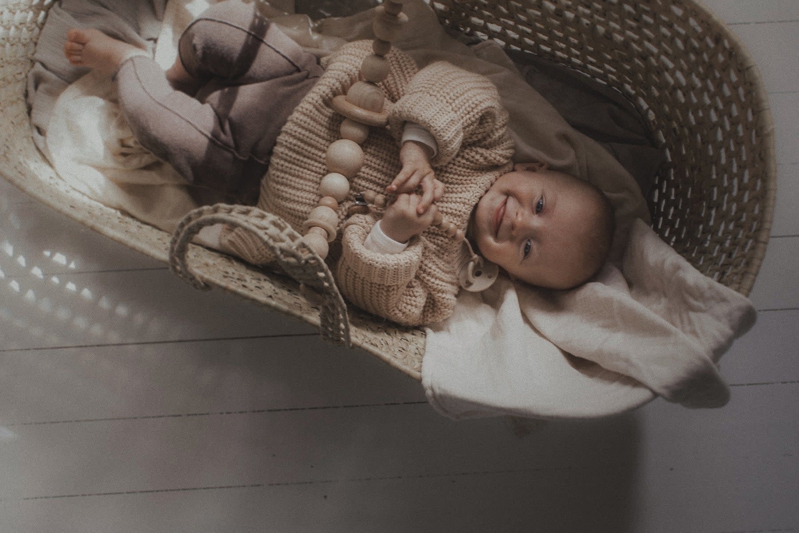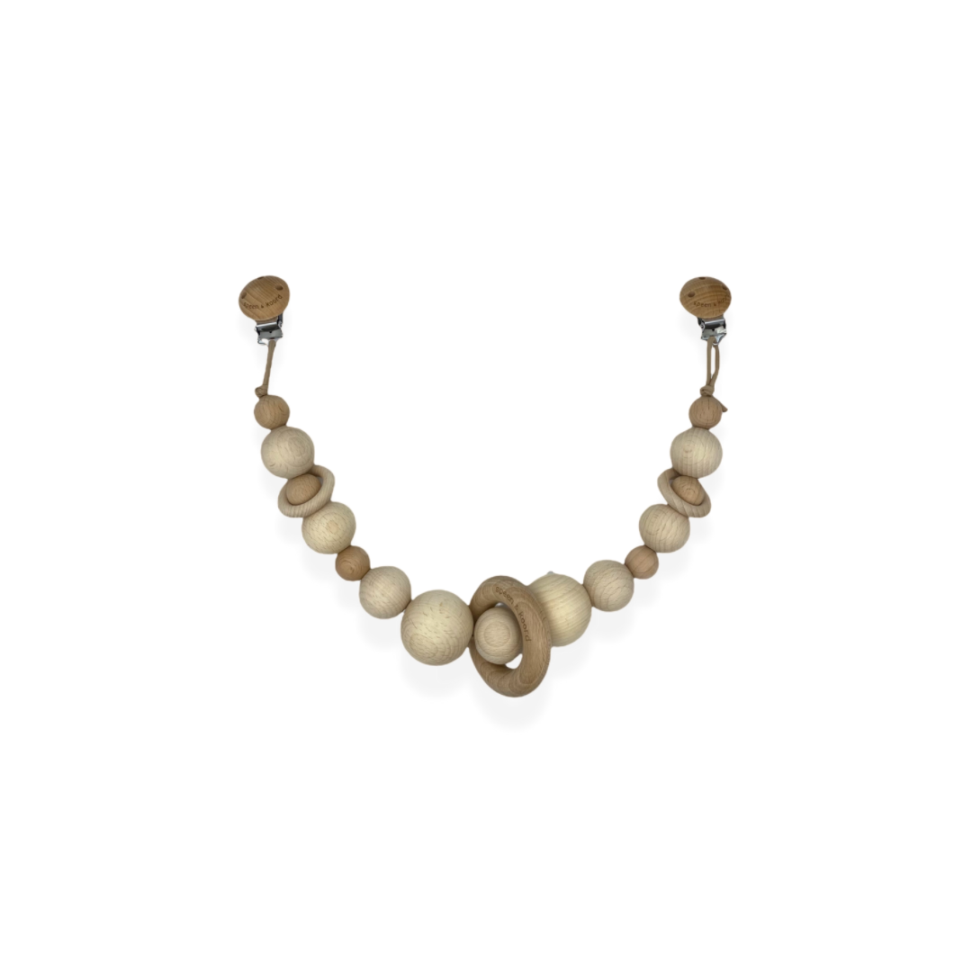 Simplistische houten kinderwagenspanner, gemaakt van 100% onbehandeld natuurlijk merkbeukenhout ring FSC, 100% onbehandeld natuurlijk beukenhout en elastisch koord.