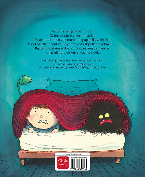 Victor is nergens bang voor. Of tenminste, dat zegt hij altijd. Maar sinds hij en zijn mama en papa zijn verhuisd, hoort hij elke nacht gefluister en onheilspellend gekraak … Bij het uitzoeken wat er nu precies aan de hand is, krijgt hij hulp uit onverwachte hoek …