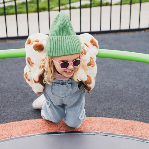 Dit flexibel zonnebrilletje is een montuur uit 1 stuk: perfect voor baby’s zonder risico op breken of knellen. Het heeft geen scharnieren en is dus veilig voor vingertjes of risico op inslikken van kleine onderdelen.